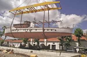 2 Temmuz 2017 tarihinde Çanakkale Deniz Müzesi Komutanlığında kurulan 1000 tonluk kara kreyni, 3 Temmuz 2017 tarihinde gemiyi denizden alarak, yapılan kaideye intikalini sağlayacak kara aracının üzerine oturtmuştur. Aynı gün kara kreyni tekrar sökülerek kaidenin yanında kurulmuştur. 4 Temmuz 2017 tarihinde ise kara aracı vasıtasıyla kaidenin yanına intikal ettirilmiş, sonrasında kaideye oturtulmuştur.