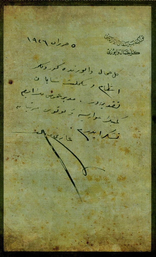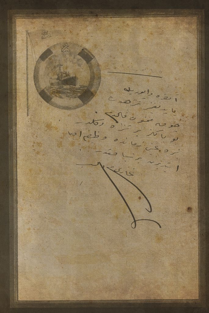 “Marmara Vapuru’nda memnuniyetle geçirdiğimiz birkaç dakikanın hatırasına.’’ Gazi Mustafa Kemal Atatürk 20 Eylül 1924