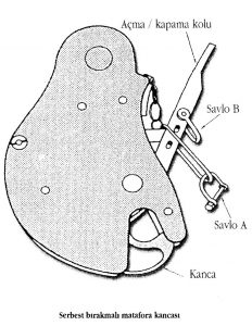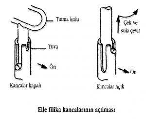 - Açma kapama kolu aşağıya doğru çekilerek kanca ağzı açılır.
