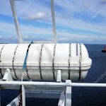 - Vidali şafta bağlı olan kol çevrilerek filikayı taşıyan kol bordaya doğru getirilir. Daha sonra palanga donanımı ile filika mayna edilir.