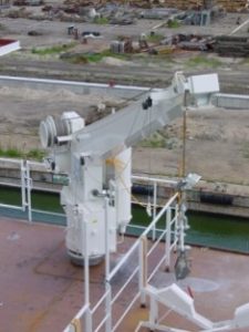 • Vidalı şafta bağlı olan kol çevrilerek filikayı taşıyan kol bordaya doğru getirilir. Daha sonra palanga donanımı ile filika mayna edilir.