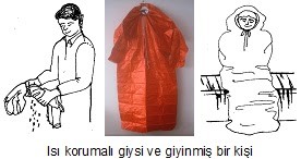 - Isı korumalı tulumlar gemilerde paketler içinde saklanır.