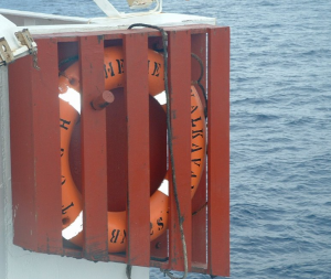 - Denize adam düştüğünde en kısa zamanda ışıklı can simidi denize atılarak, düşenin hem su üstünde zorlanmadan durabilmesi, hem de yerini gemidekilere belli etmesini sağlar. Gemimizde 2 adet köprü üstünde iskele ve sancak kırlangıçlarda bulunur.