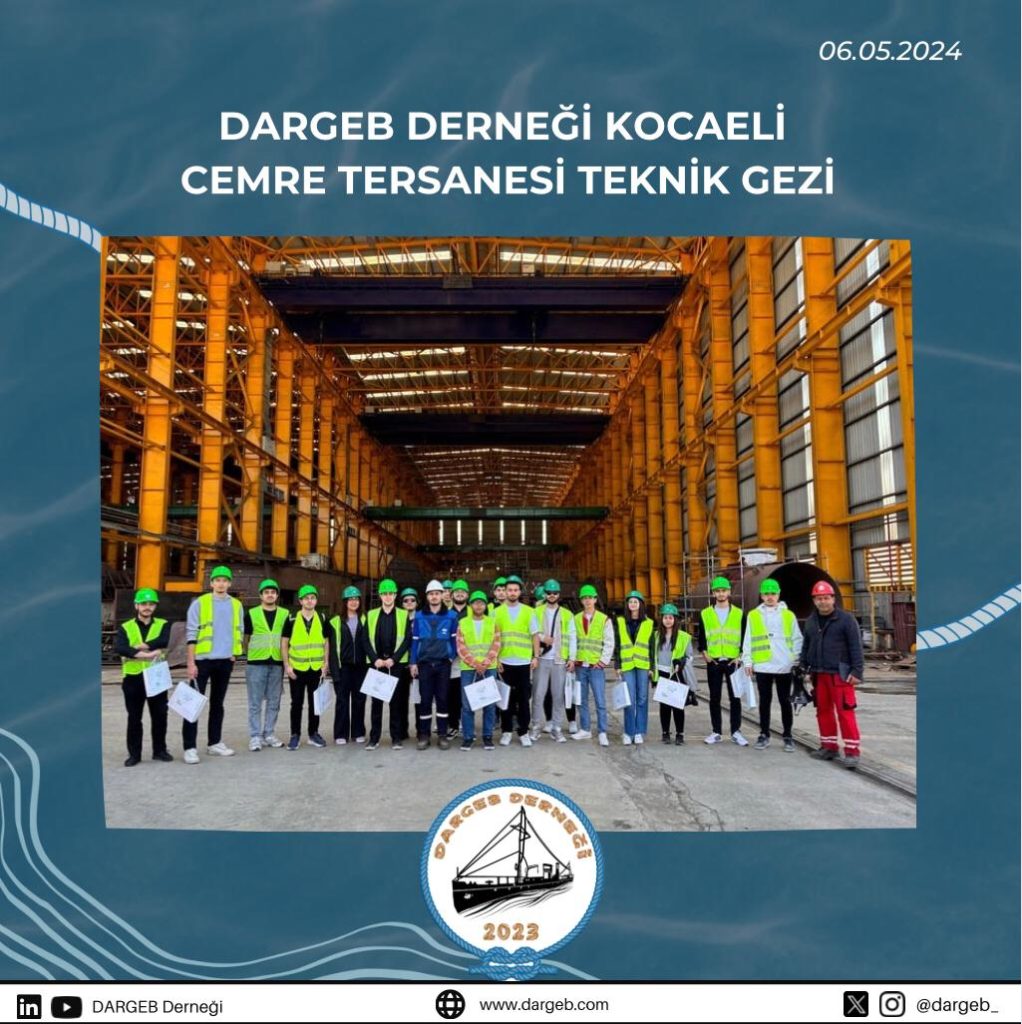 DARGEB Derneği Kocaeli Saha Ekibi olarak, 6 Mayıs 2024 tarihinde Yalova Altınova’daki Cemre Tersanesi’ni ziyaret ettik. Misafirperverlikleri ve bize kattıkları değerli bilgiler için kendilerine teşekkür ederiz. Biz öğrencilere tersaneyi gezdirerek işleyiş hakkında detaylı bilgi vererek, bizzat gösterdiler. Kendilerine gösterdikleri özen ve emek için bir kez daha teşekkür ederiz.