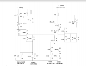 bağlantı şemasının bir bölümüdür.Motor yıldız konumunda yol alırken motor koruma