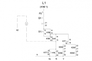 üzerinden kendiliğinden devrede kalır.K1M M1 motorunu yıldız konumunda şebeke