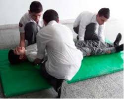 - Üç ilk yardımcı, bacaklarını açarak hasta veya yaralının üzerine hafifçe çömelir.