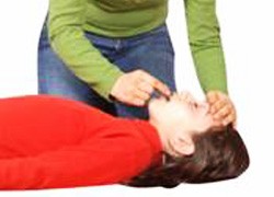 - Solunum yok ise; alnın üzerine konulan elin baş ve işaret parmağını kullanarak çocuğun burnu kapatılır,