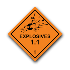 IMDG Koduna Göre Kitle Halinde ve Birden Patlayanlar Patlayıcılar İçin Kullanılan Etiket.