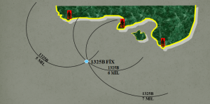 Aynı maddeden bir kerteriz ve bir mesafe ile fix : Aynı seyir yardımcısından alınan bir kerteriz hattı ve bir mevkii dairesinin kesişimi ile fix mevkii elde edilir.