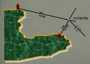 Bir transit ve bir kerteriz ile fix : Bir kerteriz hattı ve bir transit hattının kesiştiği nokta mevkiyi verir.