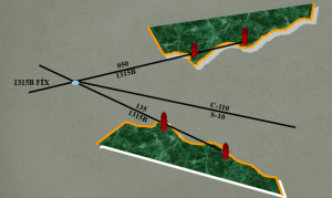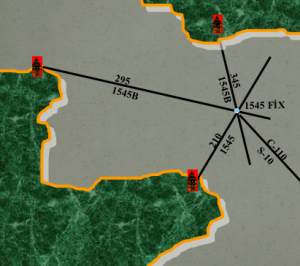 İki transitle fix : Çapraz iki kerteriz ile fix bulma yöntemiyle mevkii elde edilir. .