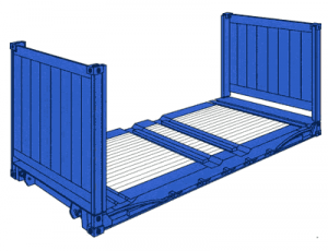 • Bu tip konteynerlerin tavanı ve iki yan.  duvarı bulunmamaktadır. Kısaca Flat olarak adlandırılan bu tip türünde yandan ve üstten taşmalı yükler taşınmaktadır.