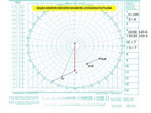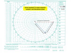 “e” Manevra levhasının merkezi. Kendi gemimizin hareket vektörünün başlangıcı.