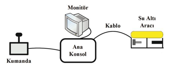ROV (RemotelyOperatedVehicle), en genel tanımı ile bir operatör tarafından uzaktan kontrol edilerek su altında çeşitli görevleri yerine getiren sualtı robotudur. ROV sistemi; dalıcı gövde, bu dalıcı gövdenin kontrolünün sağlandığı operatör konsolu ve dalıcı gövdeyi yüzeye bağlayan kablodan oluşmaktadır. Şekil 1.2’de bir ROV sisteminin temel bileşenleri gösterilmektedir. ROV’lar boyut ve kullanım şekline göre farklı kategorilere ayrılmaktadır.