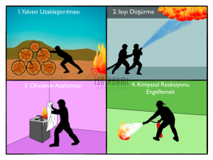 Yanma esnasında, yanan maddenin ısısı azaltılır ve yanma derecesinin altına düşürülürse yanma durur.