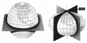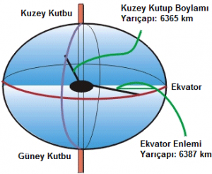 Deniz seviyesi üzerinden bir çizim yapıldığı zaman dünyanın geoit şekilde olduğu görülür.geoit incelendiği zaman da yine bir tam küre olmadığı dönüş ekseninin gösterdiği kutuplardan basık olduğu görülür. Bu nedenle biz dünyanın şeklini kısa kenar etrafında dönen ELİPSOİT olarak tanımlayabiliriz.
